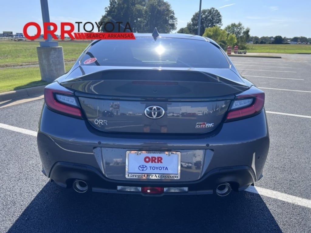 Pavement 2025 Toyota GR86 Premium RWD 6-Speed Automatic 2.4L 4-Cylinder DOHC 16V This GR86 Premium is nicely equipped with 2-Stage Heated Sport Front Seats, 4-Wheel Disc Brakes, 8 Speakers, ABS brakes, Air Conditioning, Alloy wheels, AM/FM radio: SiriusXM, Apple CarPlay/Android Auto, Auto High-beam Headlights, Automatic temperature control, Brake assist, Bumpers: body-color, Delay-off headlights, Driver door bin, Driver vanity mirror, Dual front impact airbags, Dual front side impact airbags, Electronic Stability Control, Emergency communication system: Safety Connect (1-year trial), Exterior Parking Camera Rear, Four wheel independent suspension, Front anti-roll bar, Front Bucket Seats, Front dual zone A/C, Front reading lights, Fully automatic headlights, Heated door mirrors, Heated front seats, Illuminated entry, Knee airbag, Leather Shift Knob, Leather steering wheel, Low tire pressure warning, Occupant sensing airbag, Outside temperature display, Overhead airbag, Panic alarm, Passenger door bin, Passenger vanity mirror, Power door mirrors, Power steering, Power windows, Radio data system, Radio: GR86 Audio, Rear anti-roll bar, Rear Parking Sensors, Rear window defroster, Remote keyless entry, Security system, Speed control, Spoiler, Steering wheel mounted audio controls, Tachometer, Telescoping steering wheel, Tilt steering wheel, Traction control, Trip computer, Ultrasuede Seat Trim w/Leather Bolsters, Variably intermittent wipers, and Wheels: 18" Matte-Black-Painted Alloy.