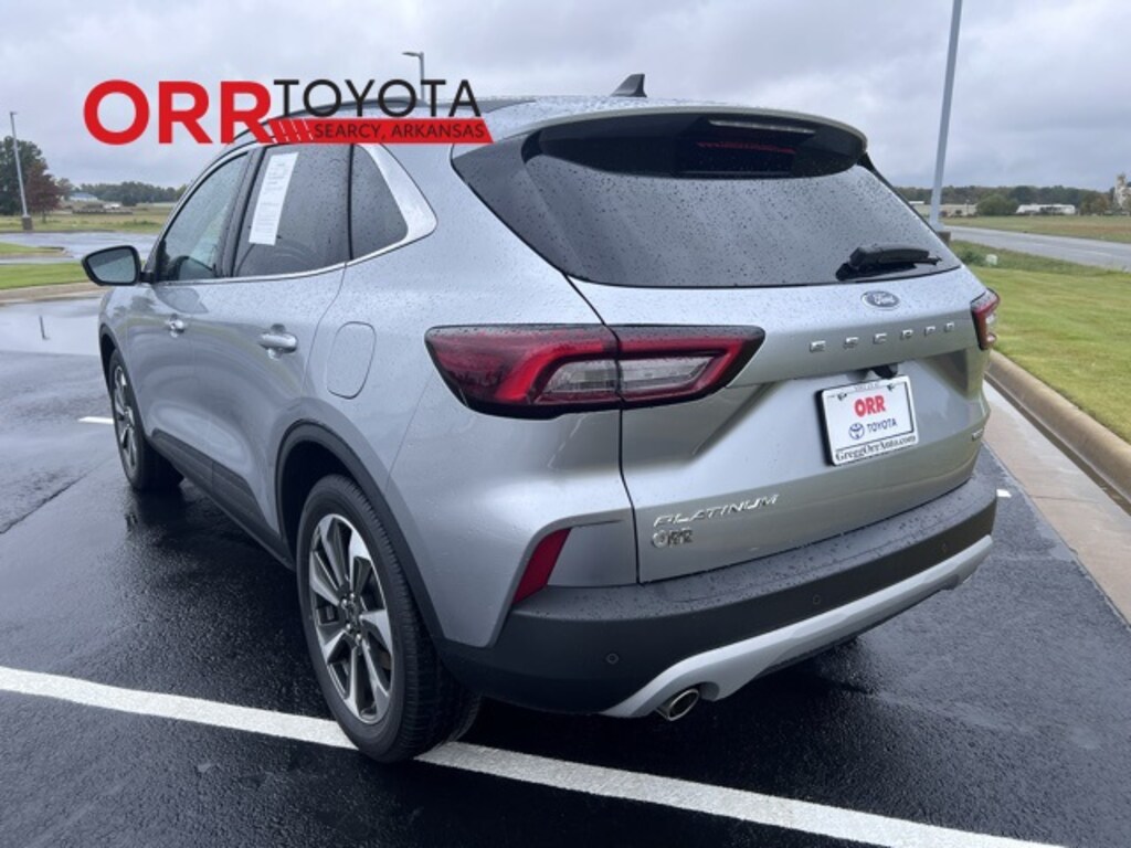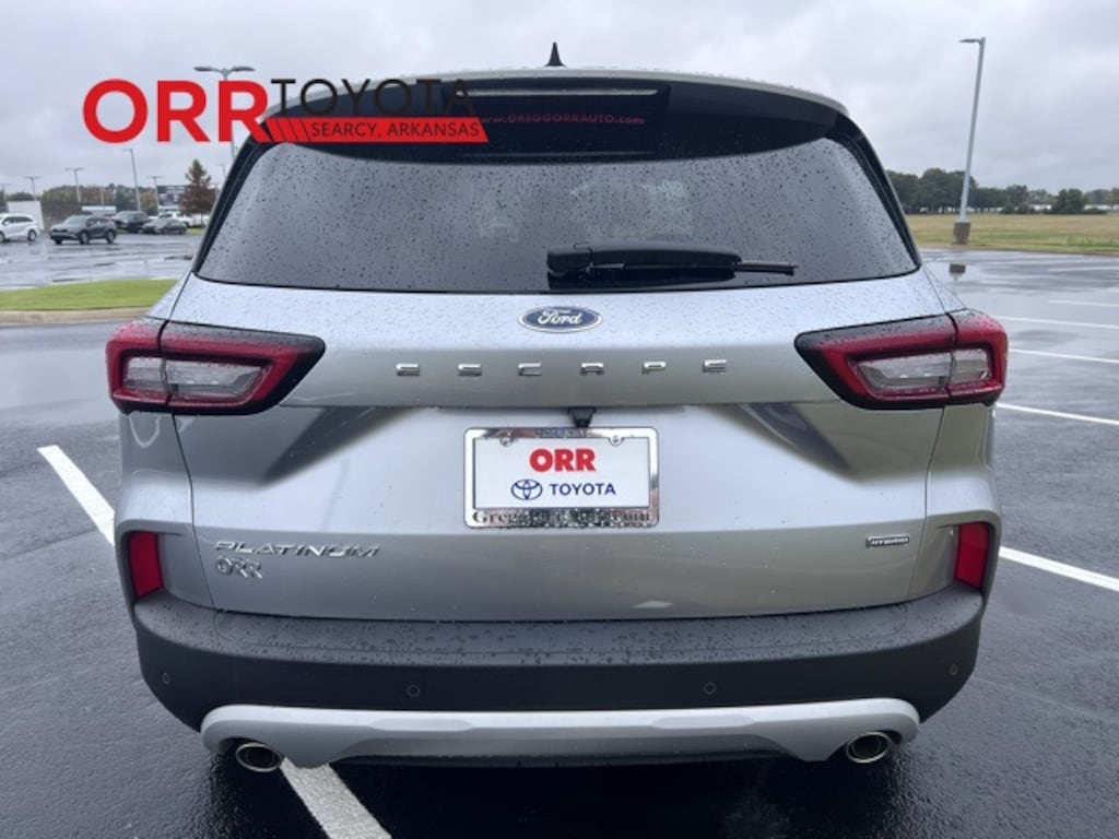 Iconic Silver Metallic 2023 Ford Escape Hybrid Platinum FWD eCVT 2.5L iVCT This Escape Hybrid Platinum is nicely equipped with Equipment Group 600A (Electronic Fuel Door Release, Neutral Towing Capability, and Pedestrian Alert Sounder), 2.5L iVCT, 2.91 Axle Ratio, 4-Wheel Disc Brakes, 6 Speakers, ABS brakes, Air Conditioning, Alloy wheels, AM/FM radio: SiriusXM, AM/FM Stereo, Auto High-beam Headlights, Auto-dimming Rear-View mirror, Automatic temperature control, Brake assist, Bumpers: body-color, Compass, Delay-off headlights, Driver door bin, Driver vanity mirror, Dual front impact airbags, Dual front side impact airbags, Electronic Stability Control, Emergency communication system: SYNC 4 911 Assist, Exterior Parking Camera Rear, FordPass Connect, Four wheel independent suspension, Front anti-roll bar, Front Bucket Seats, Front Center Armrest, Front dual zone A/C, Front fog lights, Front reading lights, Fully automatic headlights, Garage door transmitter, Heated ActiveX Trimmed Front Sport Contour Bucket Seats, Heated door mirrors, Heated front seats, Heated steering wheel, Illuminated entry, Knee airbag, Low tire pressure warning, Memory seat, Navigation system: Connected Navigation, Occupant sensing airbag, Outside temperature display, Overhead airbag, Overhead console, Panic alarm, Passenger door bin, Passenger vanity mirror, Power door mirrors, Power driver seat, Power Liftgate, Power passenger seat, Power steering, Power windows, Radio data system, Rain sensing wipers, Rear anti-roll bar, Rear reading lights, Rear seat center armrest, Rear window defroster, Rear window wiper, Remote keyless entry, Security system, Speed control, Speed-sensing steering, Speed-Sensitive Wipers, Split folding rear seat, Spoiler, Steering wheel mounted audio controls, SYNC 4 w/Enhanced Voice Recognition, Telescoping steering wheel, Tilt steering wheel, Traction control, Trip computer, Variably intermittent wipers, and Wheels: 19" Machined-Face Aluminum. Back up camera, Bluetooth, Keyless entry, 2.5L iVCT.