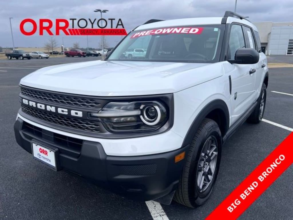 Oxford White 2025 Ford Bronco Sport Big Bend 4WD 8-Speed Automatic 1.5L EcoBoost This Bronco Sport Big Bend is nicely equipped with 4-Wheel Disc Brakes, 6 Speakers, ABS brakes, Air Conditioning, Alloy wheels, AM/FM radio: SiriusXM, AM/FM Stereo, Auto High-beam Headlights, Automatic temperature control, Brake assist, Cloth w/Easy-to-Clean Front Bucket Seats, Compass, Delay-off headlights, Driver door bin, Driver vanity mirror, Dual front impact airbags, Dual front side impact airbags, Electronic Stability Control, Emergency communication system: SYNC 4 911 Assist, Four wheel independent suspension, Front anti-roll bar, Front Bucket Seats, Front Center Armrest, Front reading lights, Fully automatic headlights, Heated door mirrors, Illuminated entry, Knee airbag, Low tire pressure warning, Occupant sensing airbag, Outside temperature display, Overhead airbag, Overhead console, Panic alarm, Passenger door bin, Passenger vanity mirror, Power door mirrors, Power steering, Power windows, Radio data system, Rear anti-roll bar, Rear Parking Sensors, Rear reading lights, Rear seat center armrest, Rear window defroster, Rear window wiper, Remote keyless entry, Security system, SiriusXM, Speed control, Speed-sensing steering, Speed-Sensitive Wipers, Split folding rear seat, Steering wheel mounted audio controls, SYNC 4 w/Enhanced Voice Recognition, Tachometer, Telescoping steering wheel, Tilt steering wheel, Traction control, Trip computer, Variably intermittent wipers, and Wheels: 17" Carbonized Gray-Painted Aluminum. One owner Carfax, Carfax no accidents, Back up camera, Bluetooth, Keyless entry.