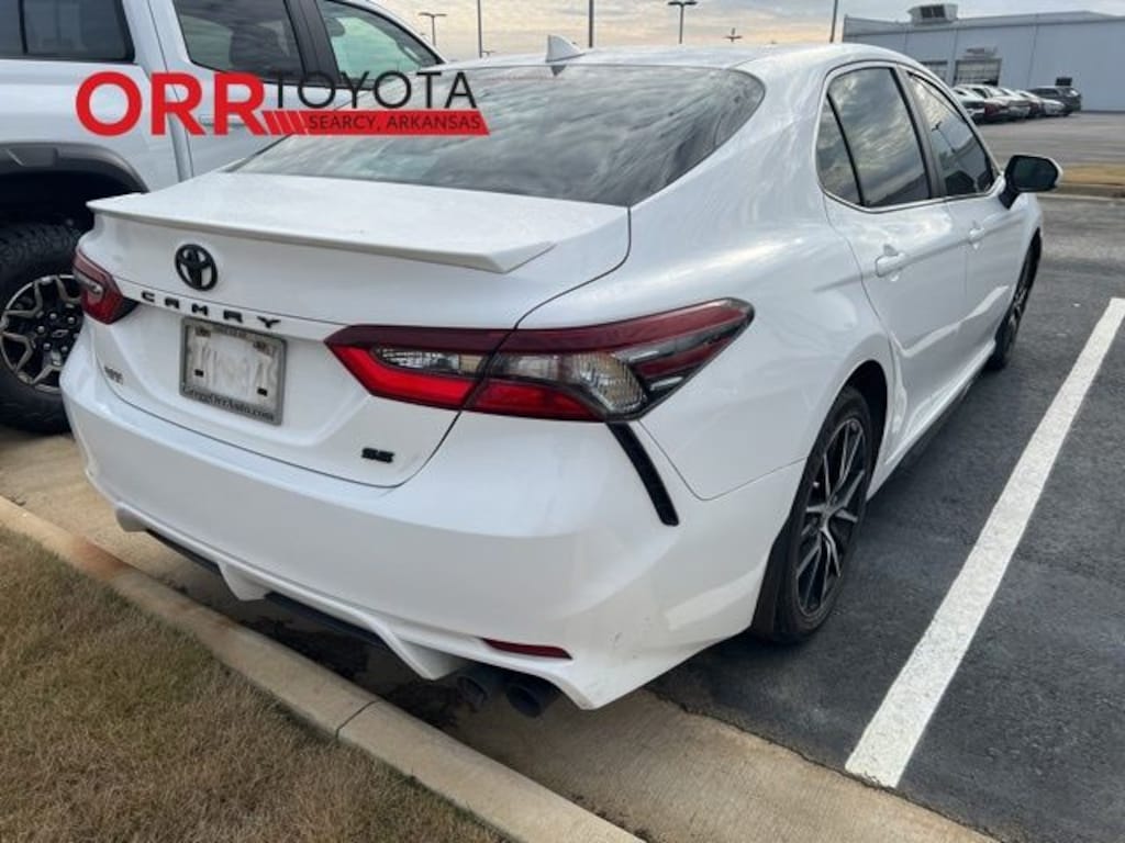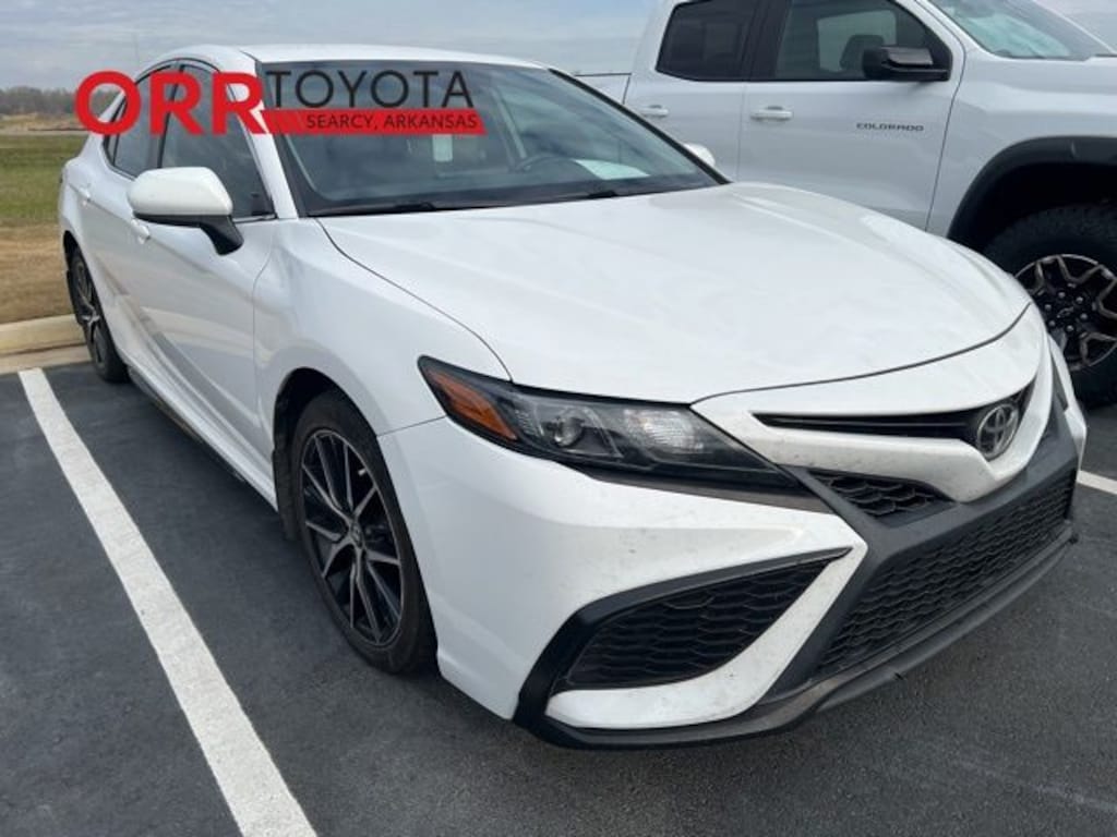 Super White 2021 Toyota Camry SE FWD 8-Speed Automatic 2.5L I4 DOHC 16V This Camry SE is nicely equipped with Black w/Fabric Seat Trim w/Sport SofTex, 4-Wheel Disc Brakes, 6 Speakers, ABS brakes, Air Conditioning, Alloy wheels, AM/FM radio: SiriusXM, Apple CarPlay/Android Auto, Auto High-beam Headlights, Automatic temperature control, Brake assist, Bumpers: body-color, Delay-off headlights, Driver door bin, Driver vanity mirror, Dual front impact airbags, Dual front side impact airbags, Electronic Stability Control, Emergency communication system: Safety Connect with 1-year trial, Exterior Parking Camera Rear, Fabric Seat Trim w/Sport SofTex, Four wheel independent suspension, Front anti-roll bar, Front Bucket Seats, Front Center Armrest, Front reading lights, Fully automatic headlights, Illuminated entry, Knee airbag, Low tire pressure warning, Occupant sensing airbag, Outside temperature display, Overhead airbag, Overhead console, Panic alarm, Passenger door bin, Passenger vanity mirror, Power door mirrors, Power driver seat, Power steering, Power windows, Radio data system, Radio: AM/FM Audio System, Rear anti-roll bar, Rear seat center armrest, Rear side impact airbag, Rear window defroster, Remote keyless entry, Security system, Speed control, Speed-sensing steering, Split folding rear seat, Spoiler, Steering wheel mounted audio controls, Tachometer, Telescoping steering wheel, Tilt steering wheel, Traction control, Trip computer, Variably intermittent wipers, and Wheels: 8.0J x 18" Black Machined-Finish Alloy. Carfax no accidents, Back up camera, Bluetooth, Keyless entry, Black w/Fabric Seat Trim w/Sport SofTex.