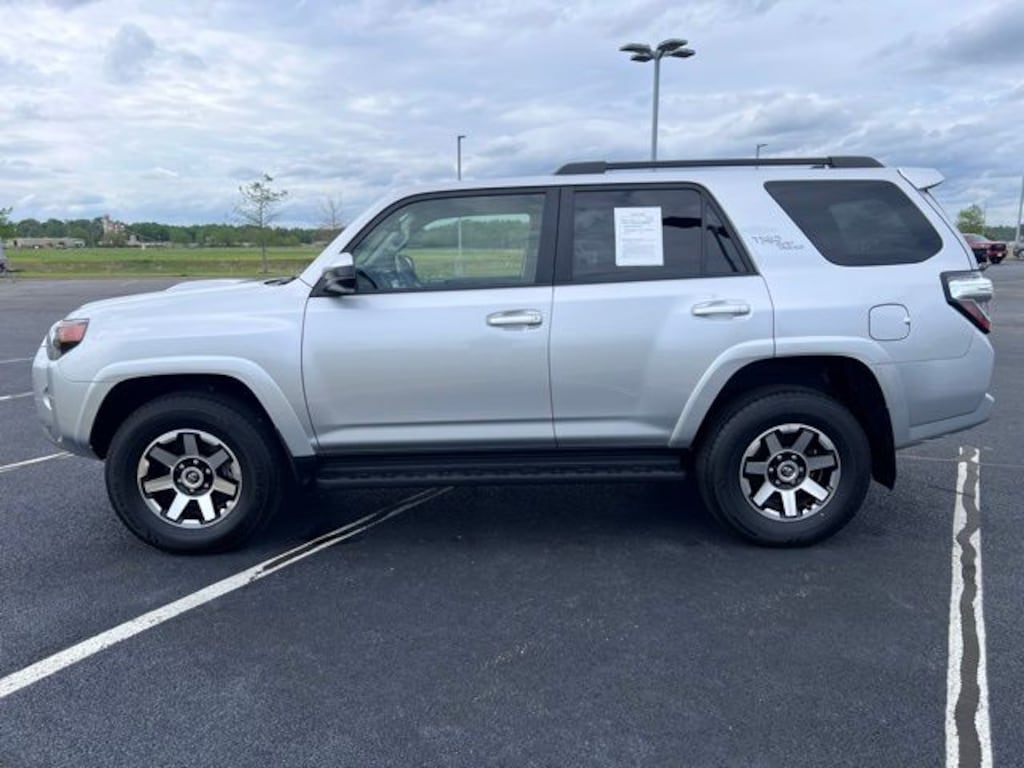 Classic Silver Metallic 2024 Toyota 4Runner TRD Off-Road 4WD 5-Speed with ECT 4.0L V6 DOHC 24V This 4Runner TRD Off-Road is nicely equipped with Off Road Package (Black Roof Rails), 4WD, Black/Graphite w/Fabric Seat Trim, 3.727 Axle Ratio, 4-Wheel Disc Brakes, 8 Speakers, ABS brakes, Air Conditioning, Alloy wheels, AM/FM radio: SiriusXM, Anti-whiplash front head restraints, Apple CarPlay/Android Auto, Auto High-beam Headlights, Brake assist, Bumpers: body-color, Compass, Driver door bin, Driver vanity mirror, Dual front impact airbags, Dual front side impact airbags, Electronic Stability Control, Emergency communication system: Safety Connect (1-year trial), Exterior Parking Camera Rear, Fabric Seat Trim, Front anti-roll bar, Front Bucket Seats, Front Center Armrest, Front fog lights, Front reading lights, Front wheel independent suspension, Heated door mirrors, Illuminated entry, Knee airbag, Leather Shift Knob, Low tire pressure warning, Occupant sensing airbag, Outside temperature display, Overhead airbag, Overhead console, Panic alarm, Passenger door bin, Passenger vanity mirror, Power door mirrors, Power driver seat, Power steering, Power windows, Radio: Audio Plus, Rear anti-roll bar, Rear seat center armrest, Rear window defroster, Rear window wiper, Remote keyless entry, Rigid Running Boards, Security system, Speed control, Speed-sensing steering, Split folding rear seat, Spoiler, Steering wheel mounted audio controls, Tachometer, Telescoping steering wheel, Tilt steering wheel, Traction control, Trip computer, Variably intermittent wipers, and Wheels: 17" Unique 7-Spoke Off-Road Alloy. Back up camera, Bluetooth, Keyless entry, 4WD, Black/Graphite w/Fabric Seat Trim, Black Roof Rails, Off Road Package.