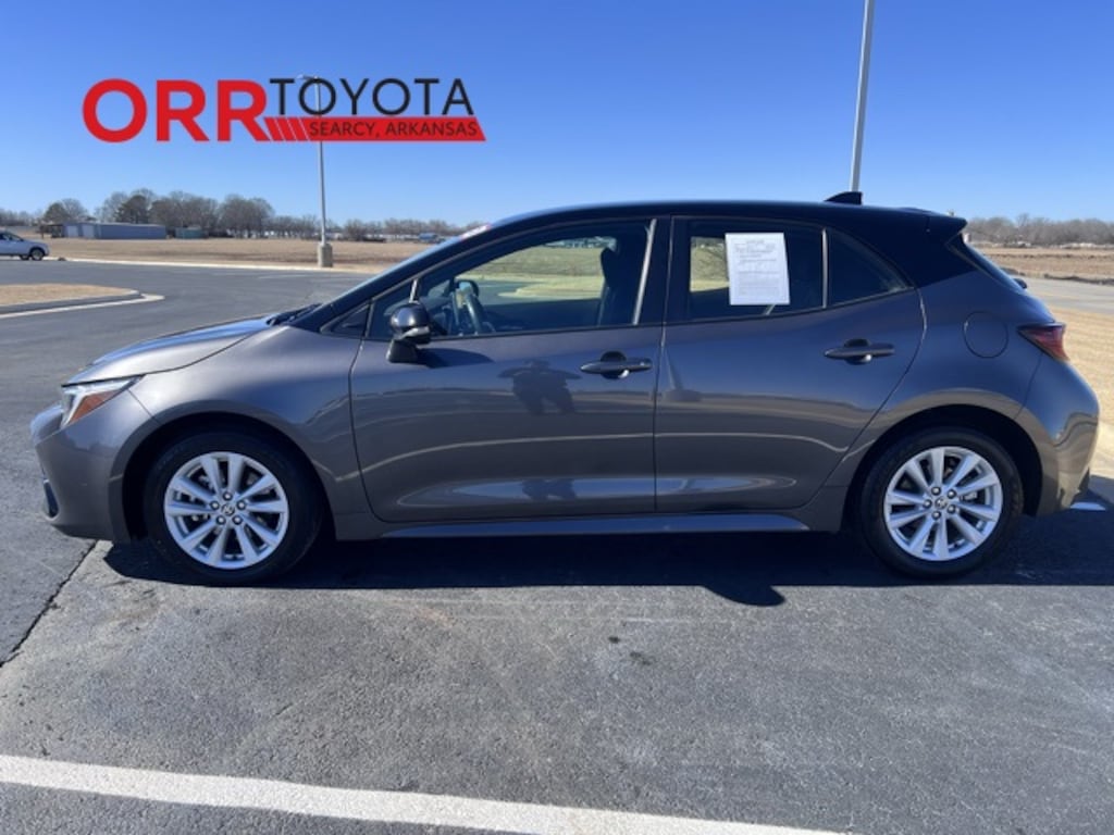 Magnetic Gray Metallic 2024 Toyota Corolla Hatchback SE FWD CVT 2.0L I4 This Corolla Hatchback SE is nicely equipped with SE Package (Blind Spot Warning Indicators, Color-Keyed Heated Power Outside Mirrors, and Wireless Charger), 16" Alloy Wheels, ABS brakes, Alloy wheels, Compass, Electronic Stability Control, Heated door mirrors, Illuminated entry, Low tire pressure warning, Remote keyless entry, Traction control, 4-Wheel Disc Brakes, 6 Speakers, Air Conditioning, AM/FM radio: SiriusXM, Auto High-beam Headlights, Automatic temperature control, Brake assist, Bumpers: body-color, Delay-off headlights, Driver door bin, Driver vanity mirror, Dual front impact airbags, Dual front side impact airbags, Emergency communication system: Safety Connect (up to 10-year trial subscription), Exterior Parking Camera Rear, Fabric Seat Trim, Four wheel independent suspension, Front anti-roll bar, Front Bucket Seats, Front Center Armrest, Front reading lights, Knee airbag, Leather Shift Knob, Leather steering wheel, Occupant sensing airbag, Outside temperature display, Overhead airbag, Overhead console, Panic alarm, Passenger door bin, Passenger vanity mirror, Power door mirrors, Power steering, Power windows, Radio data system, Radio: 8" Toyota Audio Multimedia, Rear anti-roll bar, Rear seat center armrest, Rear side impact airbag, Rear window defroster, Rear window wiper, Security system, Speed control, Speed-sensing steering, Split folding rear seat, Spoiler, Sport Front Seats, Steering wheel mounted audio controls, Tachometer, Telescoping steering wheel, Tilt steering wheel, Trip computer, Turn signal indicator mirrors, and Variably intermittent wipers. 16" Alloy Wheels, ABS brakes, Alloy wheels, Blind Spot Warning Indicators, Color-Keyed Heated Power Outside Mirrors, Compass, Electronic Stability Control, Heated door mirrors, Illuminated entry, Low tire pressure warning, Remote keyless entry, SE Package, Traction control, Wireless Charger.