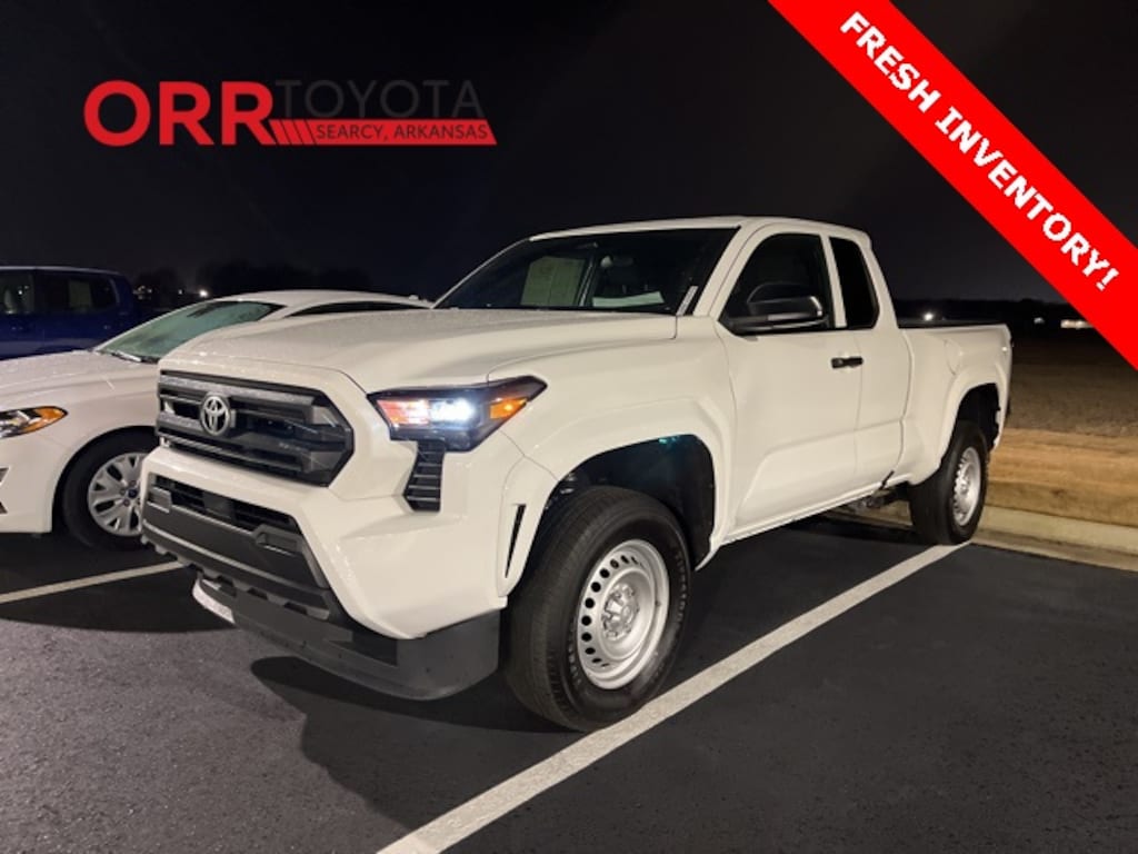 Ice Cap 2024 Toyota Tacoma SR RWD 8-Speed Automatic 2.4L 4-Cylinder This Tacoma SR is nicely equipped with 17" Steel Wheels, 3.583 Axle Ratio, 4 Speakers, 4-Wheel Disc Brakes, ABS brakes, Air Conditioning, AM/FM radio: SiriusXM, Anti-whiplash front head restraints, Apple CarPlay/Android Auto, Auto High-beam Headlights, Brake assist, Bumpers: body-color, Driver door bin, Dual front impact airbags, Dual front side impact airbags, Electronic Stability Control, Emergency communication system: Safety Connect (1-year trial), Exterior Parking Camera Rear, Fabric Seat Trim, Front anti-roll bar, Front Bucket Seats, Front Center Armrest, Front reading lights, Front wheel independent suspension, Fully automatic headlights, Heated door mirrors, Illuminated entry, Knee airbag, Low tire pressure warning, Occupant sensing airbag, Outside temperature display, Overhead airbag, Overhead console, Passenger door bin, Power door mirrors, Power steering, Power windows, Radio: 8" Toyota Audio Multimedia, Rear step bumper, Rear window defroster, Remote keyless entry, Speed control, Speed-sensing steering, Steering wheel mounted audio controls, Tachometer, Telescoping steering wheel, Tilt steering wheel, Traction control, Trip computer, and Variably intermittent wipers. Back up camera, Bluetooth, Keyless entry.