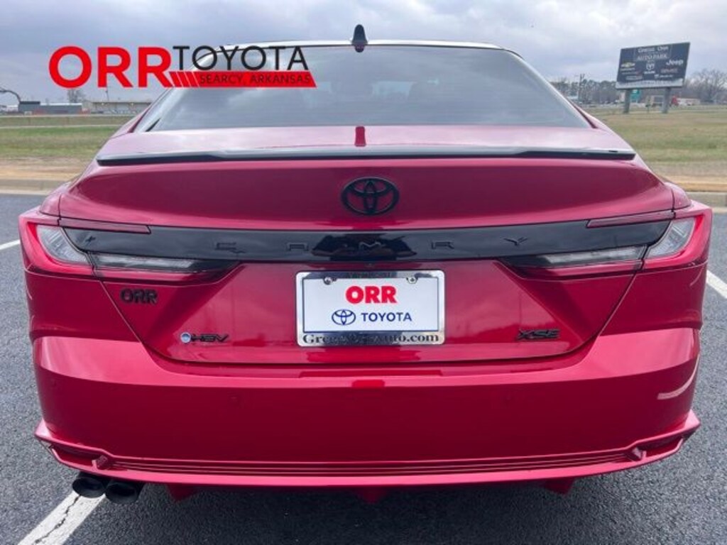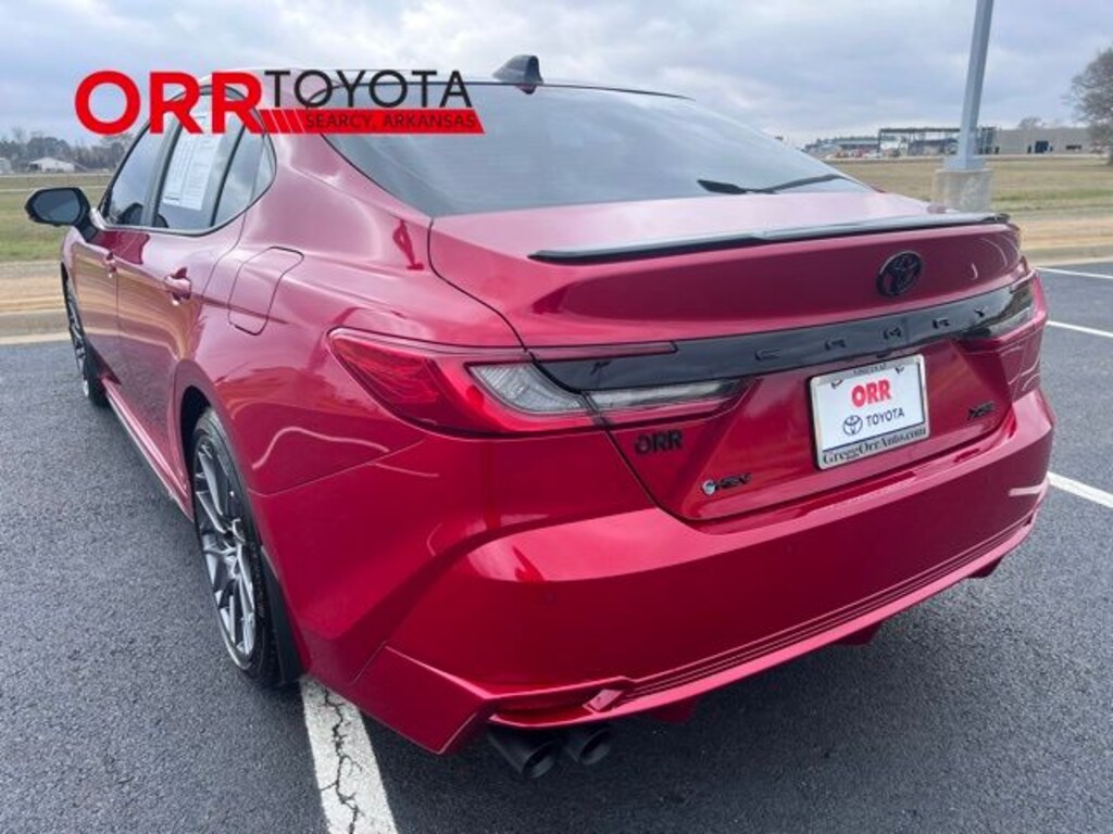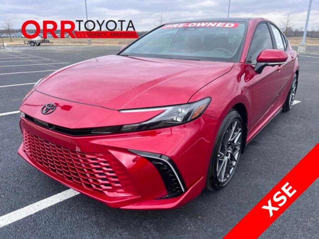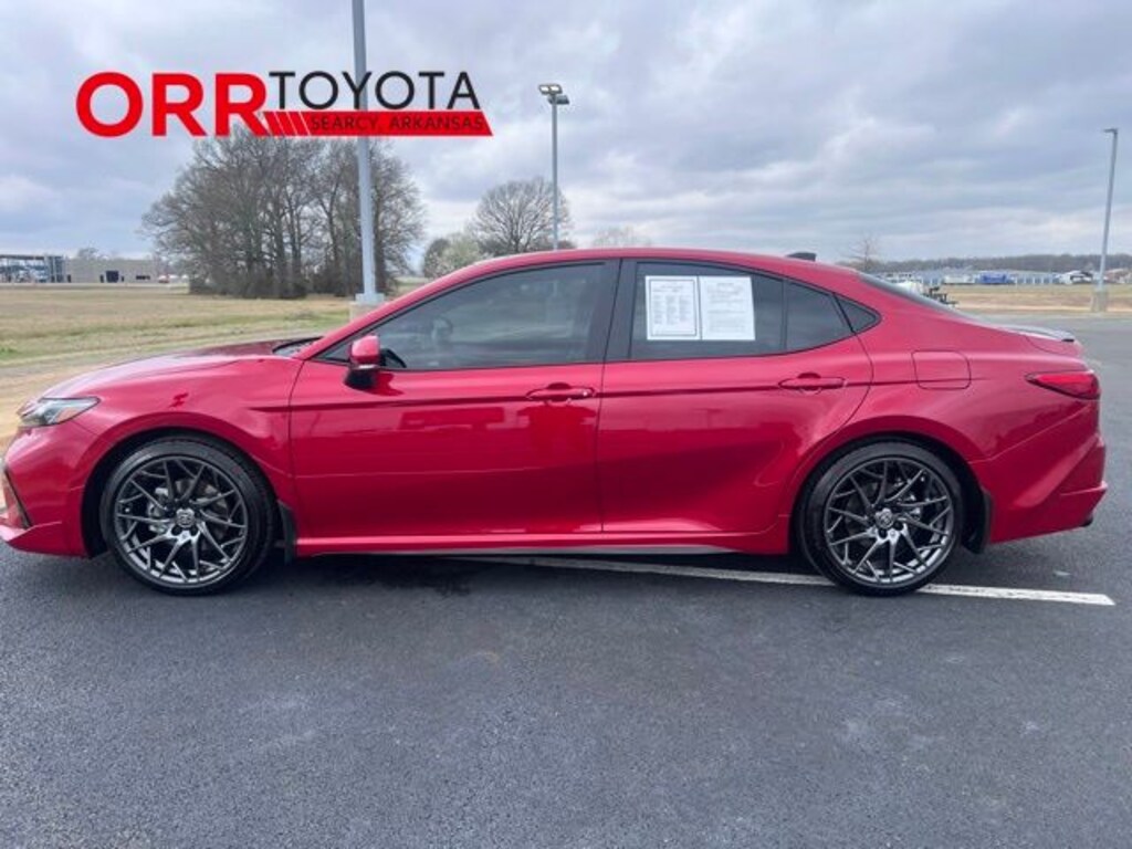 Supersonic Red 2025 Toyota Camry XSE FWD eCVT 2.5L 4-Cylinder 16V DOHC This Camry XSE is nicely equipped with Premium Plus Package (10" Color Head-Up Display, Digital Key Compatibility, Driver Attention Monitor, Front & Rear Parking Assist w/Automatic Braking, Front Cross-Traffic Alert, Lane Change Assist, Panoramic Glass Roof, Panoramic View Monitor, Radio: Toyota Audio Multimedia w/JBL, Rear Cross-Traffic Braking, Traffic Jam Assist, and Ventilated Front Seats), 2.5L 4-Cylinder 16V DOHC, Cockpit Red w/Leather Seat Trim, Black Badge Overlays (TMS), 4-Wheel Disc Brakes, 6 Speakers, ABS brakes, Air Conditioning, Alloy wheels, AM/FM radio: SiriusXM, Apple CarPlay/Android Auto, Auto High-beam Headlights, Auto-dimming Rear-View mirror, Automatic temperature control, Brake assist, Bumpers: body-color, Delay-off headlights, Driver door bin, Driver vanity mirror, Dual front impact airbags, Dual front side impact airbags, Electronic Stability Control, Emergency communication system: Safety Connect (up to 10-year trial subscription), Exterior Parking Camera Rear, Four wheel independent suspension, Front Accent Lighting (TMS), Front anti-roll bar, Front Bucket Seats, Front Center Armrest, Front dual zone A/C, Front reading lights, Fully automatic headlights, Garage door transmitter: HomeLink, Heated door mirrors, Heated Front Bucket Seats, Heated front seats, Heated steering wheel, Illuminated entry, Illuminated Trunk Sill (TMS), Knee airbag, Leather Seat Trim, Leather Shift Knob, Leather steering wheel, Low tire pressure warning, Mudguards (TMS), Occupant sensing airbag, Outside temperature display, Overhead airbag, Overhead console, Panic alarm, Passenger door bin, Passenger vanity mirror, Power door mirrors, Power driver seat, Power passenger seat, Power steering, Power windows, Radio data system, Radio: Toyota Audio Multimedia w/12.3" Touchscreen, Rear anti-roll bar, Rear reading lights, Rear seat center armrest, Rear side impact airbag, Rear window defroster, Remote keyless entry, Security system, Speed control, Speed-sensing steering, Split folding rear seat, Spoiler, Steering wheel mounted audio controls, Telescoping steering wheel, Tilt steering wheel, Traction control, Trip computer, Turn signal indicator mirrors, Variably intermittent wipers, and Wheels: 19" Smoke Gray & Black-Finished Alloy. One owner Carfax, Carfax no accidents, Back up camera, Bluetooth, Heated and cooled seats, Blind spot monitor, Keyless entry, 2.5L 4-Cylinder 16V DOHC, Cockpit Red w/Leather Seat Trim, 10" Color Head-Up Display, Black Badge Overlays (TMS), Digital Key Compatibility, Driver Attention Monitor, Front & Rear Parking Assist w/Automatic Braking, Front Cross-Traffic Alert, Lane Change Assist, Panoramic Glass Roof, Panoramic View Monitor, Premium Plus Package, Radio: Toyota Audio Multimedia w/JBL, Rear Cross-Traffic Braking, Traffic Jam Assist, Ventilated Front Seats.